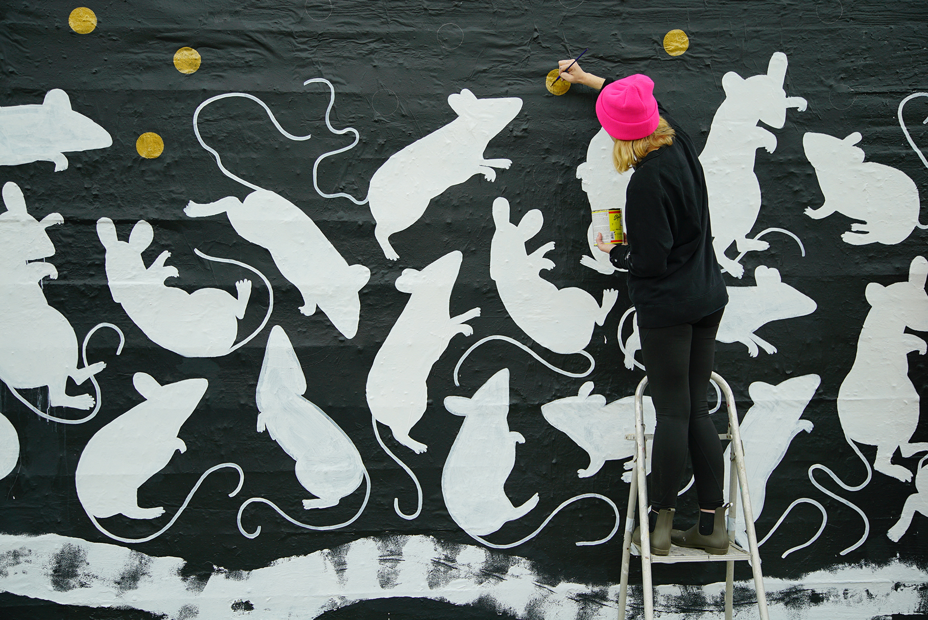 Because it is a speak easy and has a prohibition them, I wanted to make an illustration that could be a metaphor for the way alcohol consumption was perceived at the time. The mice are enjoying themselves while blissfully chasing fireflies. In their state of pure happiness, they don’t even notice the snake that is surrounding and imminent danger surrounding them.